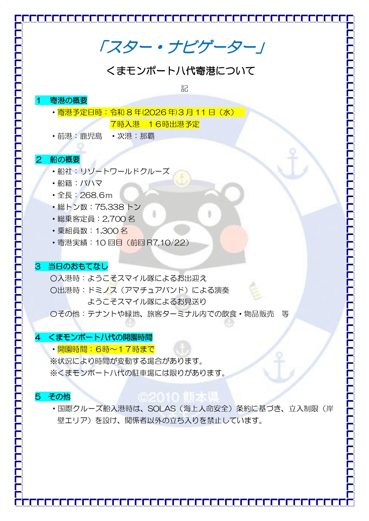 スター・ナビゲーター寄港情報 R8.3/11寄港予定