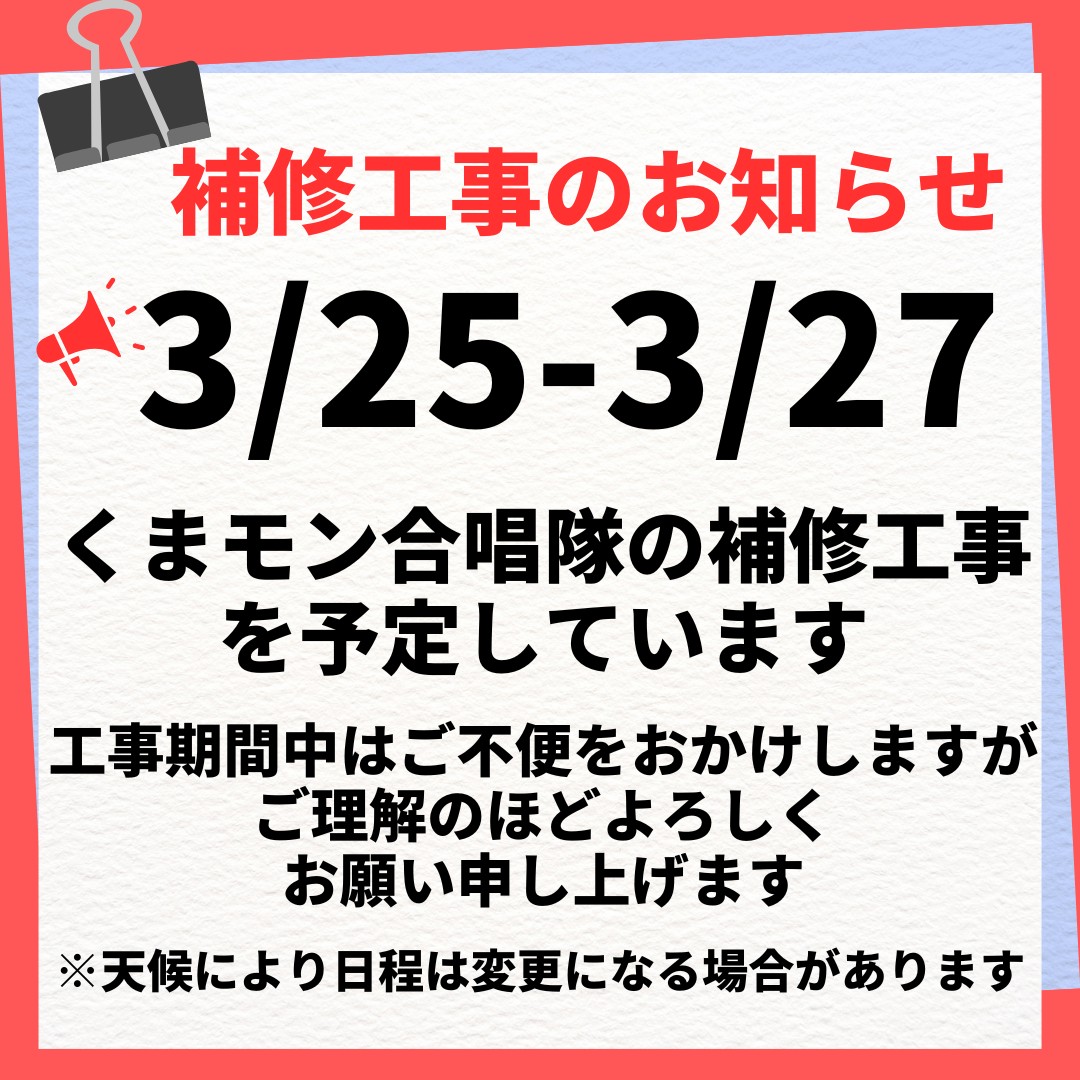 【お知らせ】くまモン合唱隊補修工事のお知らせ 令和8年3月25日~27日実施予定