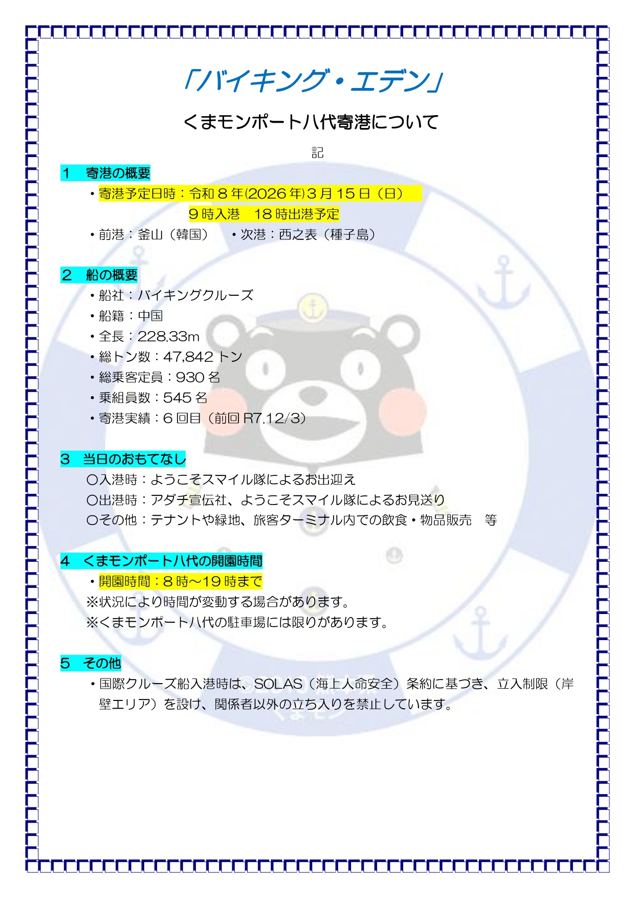バイキング・エデン寄港情報 R8.3/15寄港予定